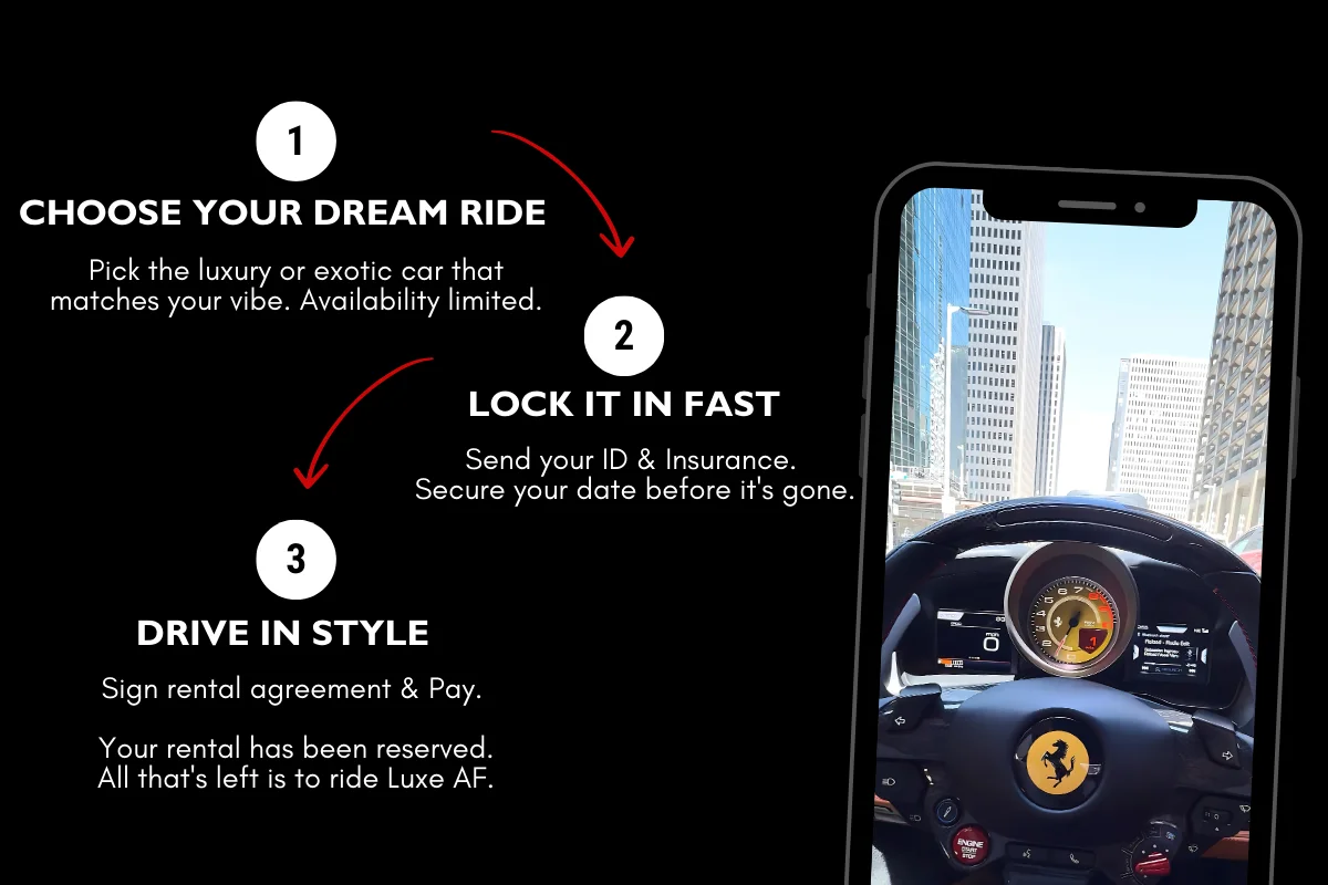 Experience the Luxe Lifestyle by driving a Lamborghini, Ferrari, or other premium exotic cars.